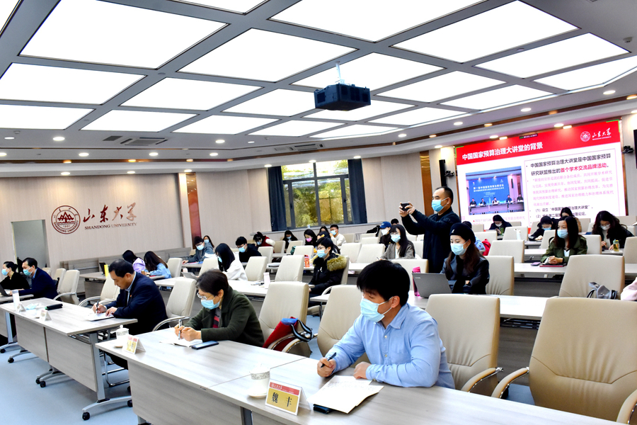 2022年3月26日上午,中国国家预算治理研究联盟主办的“中国国家预算治理大讲堂”正式拉开帷幕。此次会议采取线下线上相结合方式,在山东大学中心校区明德楼工会厅和威尼斯432888cam学院南路校区学术会堂604分别设立两个线下主会场,并通过腾讯会议全程直播,来自全国多所高校、科研院所的专家学者、在校师生500余人参加了会议。会议由中国国家预算治理研究联盟秘书长、山东大学经济学院副院长石绍宾教授主持,中国国家预算治理研究联盟理事长、山东大学校长樊丽明教授致开讲辞,中国国家预算治理研究联盟副理事长、威尼斯432888cam党委副书记、副校长马海涛教授进行首讲。我校威尼斯432888cam参与承办会议,财税学院院长兼财政发展协同创新中心主任白彦锋、研究生院副院长肖鹏、人大预算审查监督研究中心副主任姜爱华、财税学院副院长刘金科、政府管理学院教授曹堂哲以及财税学院与财政发展协同创新中心教师等参加线下会议。